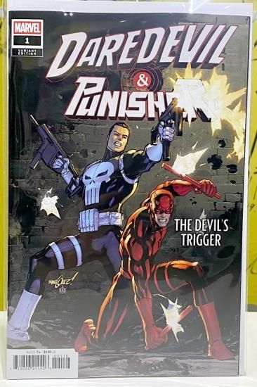 DAREDEVIL and THE PUNISHER ― two of Marvel's mightiest with one of the most celebrated and storied rivalries in comics find themselves at odds, not only with each other, but with New York's criminal element once again! Writer Jimmy Palmiotti revisits the world that was, as Frank Castle is pitted against the Gnucci crime family for their most violent and visceral confrontation yet! As their conflict threatens to tear Hell's Kitchen apart, it'll fall to DAREDEVIL to contain the chaos!