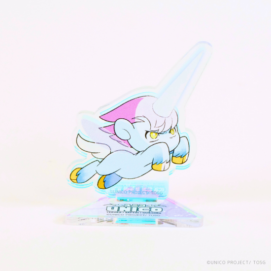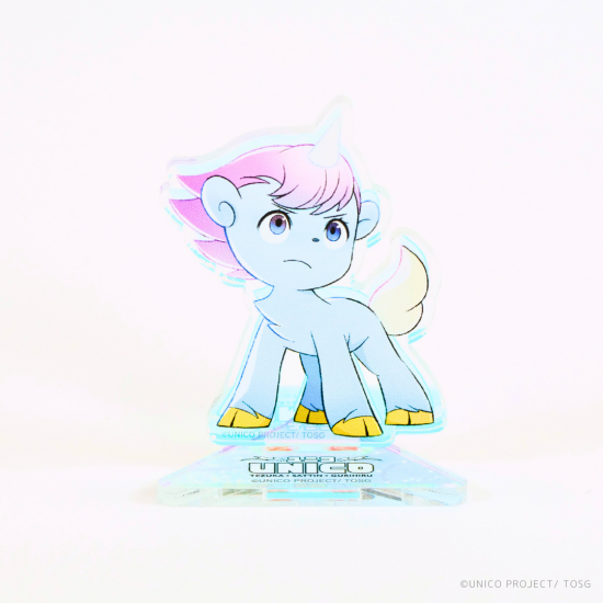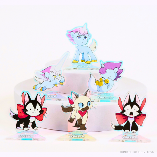こちらは『ユニコ星のきずな -覚醒編-』作中イラストを使用した、ユニコと仲間たちのアクリルスタンドコレクション。オーロラ仕様で光にあてると輝く仕様。